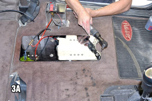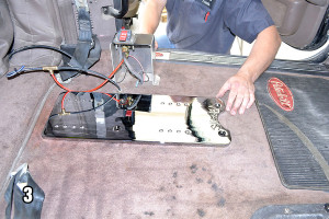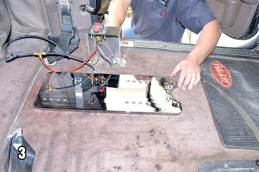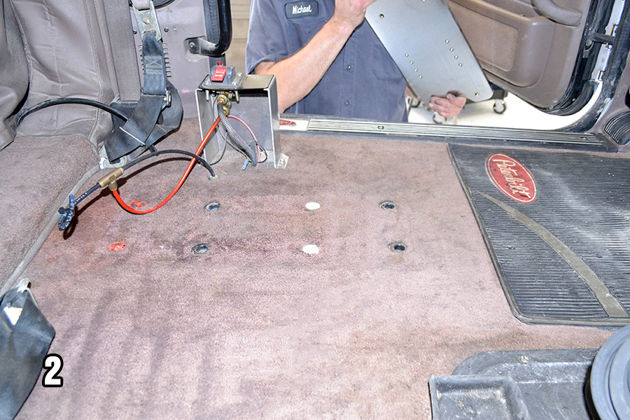 3) Place and secure the Iowa Custom’s seat base adaptor to the cab floor with the supplied countersunk bolts.