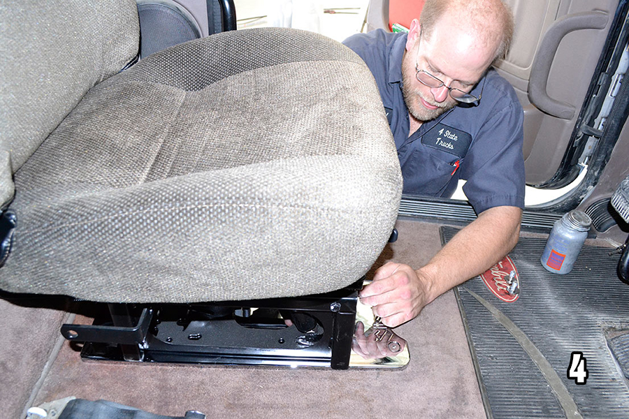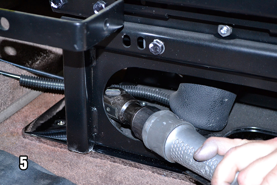 4) Now, hopefully you didn’t send your buddy home yet because you’ll probably want him around for hoisting your seat back into the cab! We recommend applying some masking tape or something similar to the bottom of your seat base to keep from scuffing the top of the seat base adaptor while you are putting the seat in or adjusting from setting to setting.