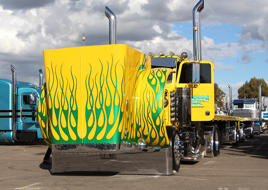 Held on October 24-25 at the San Joaquin Fairgrounds in Stockton, Calif., this event featured 400 Peterbilts of all types, new and old, custom and classic, from every decade. There were also some old Fageol trucks (the pre-cursors to Peterbilts), as well as the very first chassis to ever roll down the Peterbilt line in Oakland after T.A. Peterman formed the company. Before the first Peterbilt was made, six chassis were sent down the line to “test” the system. It was thought that all of these trucks were gone, but one of them, the very first one, was found at the Fremont Fire Dept., not far from Oakland. Although not technically a Peterbilt, this old 1939 fire truck (known as Chassis #1) with a Diamond-T front end, built by the Challenger Fire Equipment Company, is an amazing piece of preserved history, nonetheless – and it still runs!