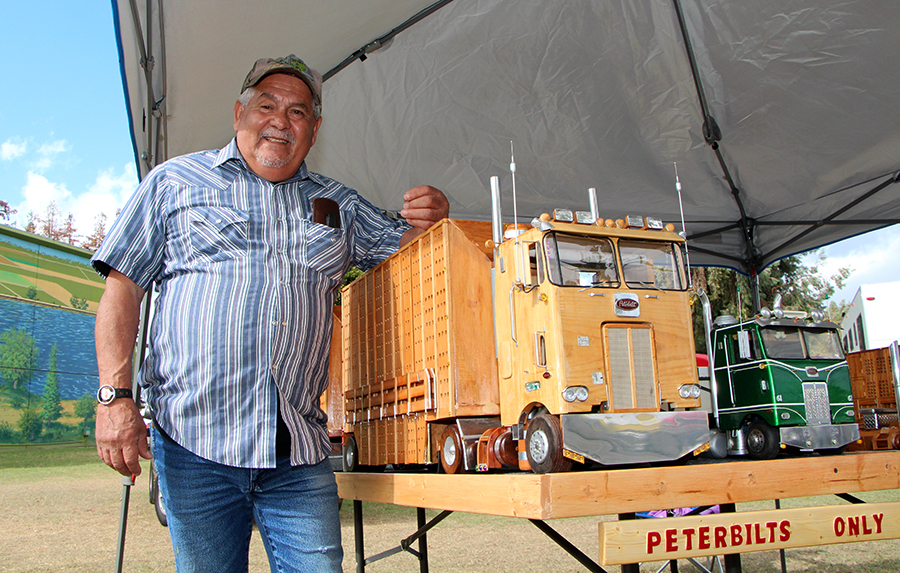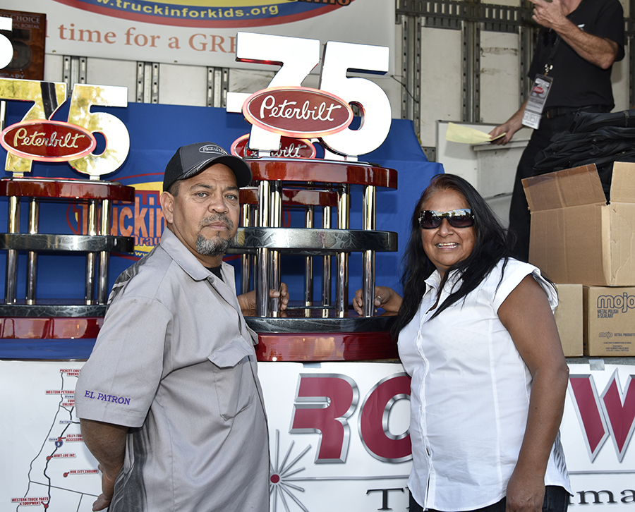 With plenty of trucks to see and things to do, the one-day show, which had about 5,000 spectators, went by quickly. Peterbilt brought out a special anniversary display trailer, pulled by an Anniversary Edition Model 579 (like the one next to our booth). Filled with all sorts of displays, historic artifacts and interactive kiosks, this “rolling Peterbilt museum” was a big hit. There was also an auction, live music, and a Peterbilt Employee Reunion (this fun get-together included past and present engineers and employees from all four of Peterbilt’s production plants). They also raffled-off a 1976 Peterbilt 359 Ext. Hood, with all the proceeds, raised throughout the year at various events, going to help fund breast cancer research. The lucky winner of the truck, C. Marshall of Livermore, Calif., was not present, but he was excited when they called him on the phone from the stage.
