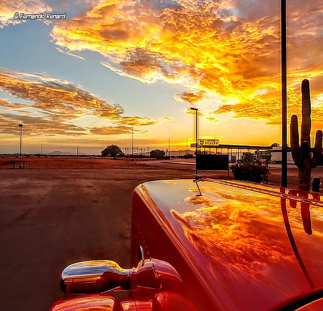 Fernando Renard was born in Chile and his family migrated to the U.S. in 1971 when he was six years old. His dad was a trucker, and every summer he would ride along with him on his trips from Long Beach, CA to Houston, TX. But, like most dads, he discouraged Fernando from becoming a truck driver. In 2000, he decided to go to truck driving school, saying, “This looks like fun.” And it was! He’s been hauling oversize for the last six years, pulling a double-drop. Six years ago, Fernando started taking pictures when he got his first smart phone. Bette used to say that you don’t need a great camera if you have a good eye, and I think it’s safe to say that Fernando has a good eye.