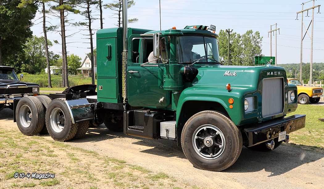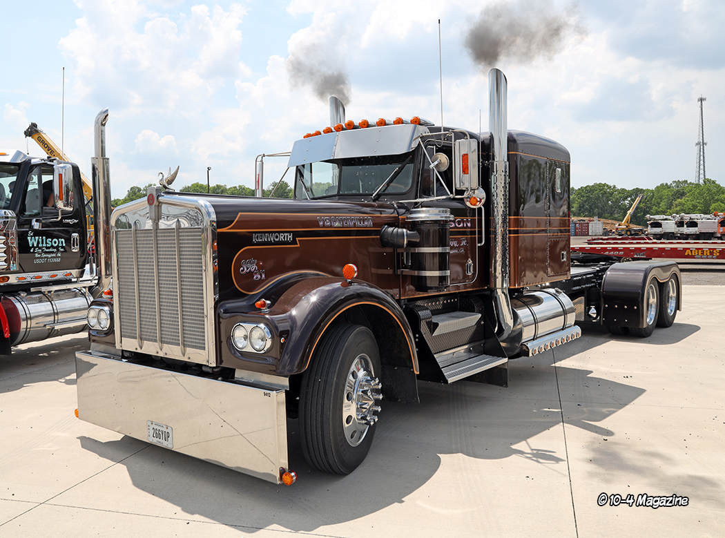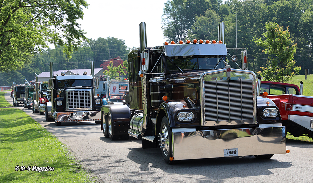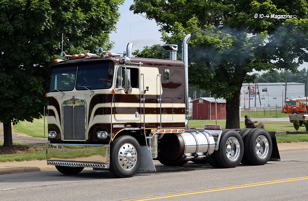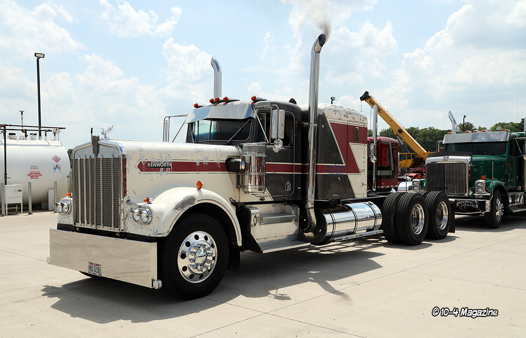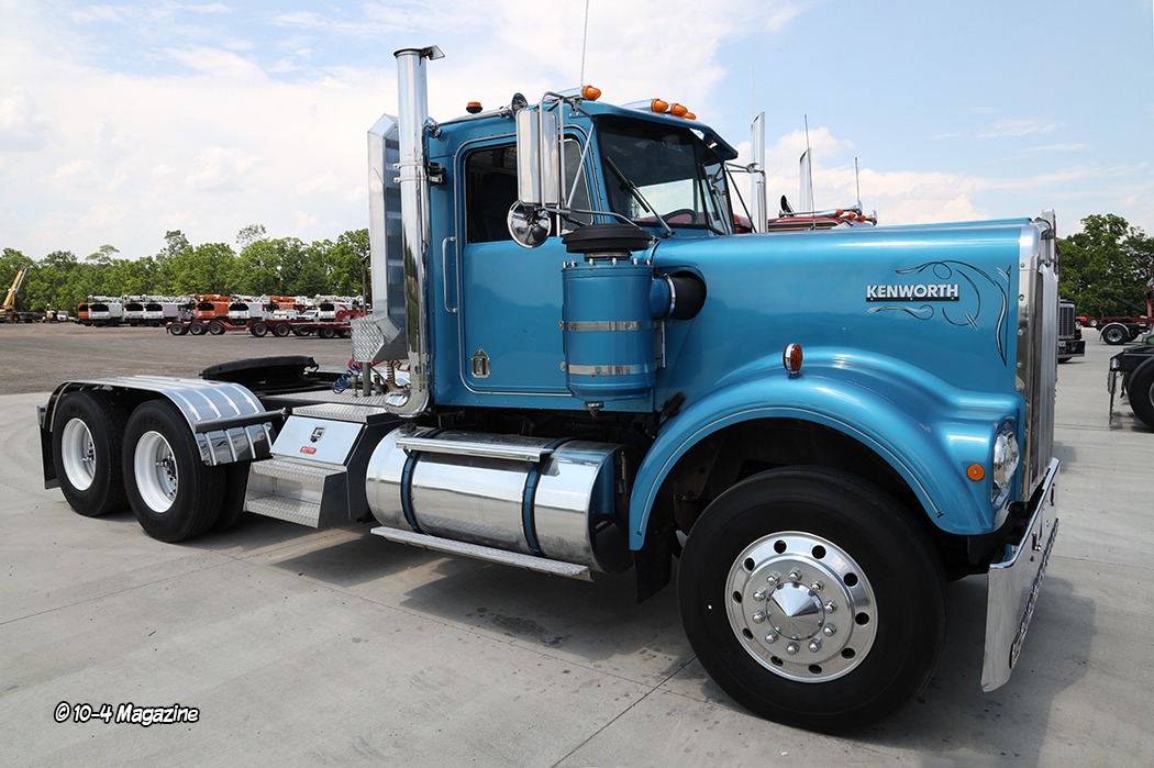 There were three trucks, in the front of the staged trucks involved with the convoy, that had huge green masks on them – Bill Peters’ single-axle W900A, Paul Laity’s Ford C-750 single-axle wrecker, and Dennis Campbell’s Autocar AT-64 tractor with sleeper. As the clock quickly approached 9:00 AM, all those who came to take part in the convoy were gathered up in front behind Dennis Campbell’s Autocar. Dennis described what was going to take place on the convoy, including where they were all going, the exact routes they would be traveling between the stops, how long they would be at each of those stops, and the method of letting those involved know when they would be departing. With all that said, everyone got in their trucks and prepared to get rolling.