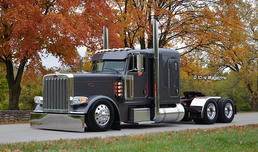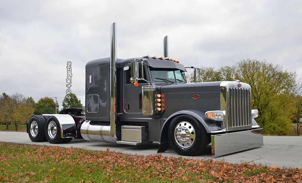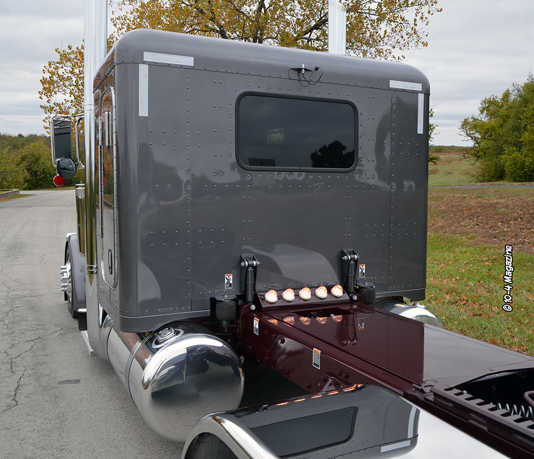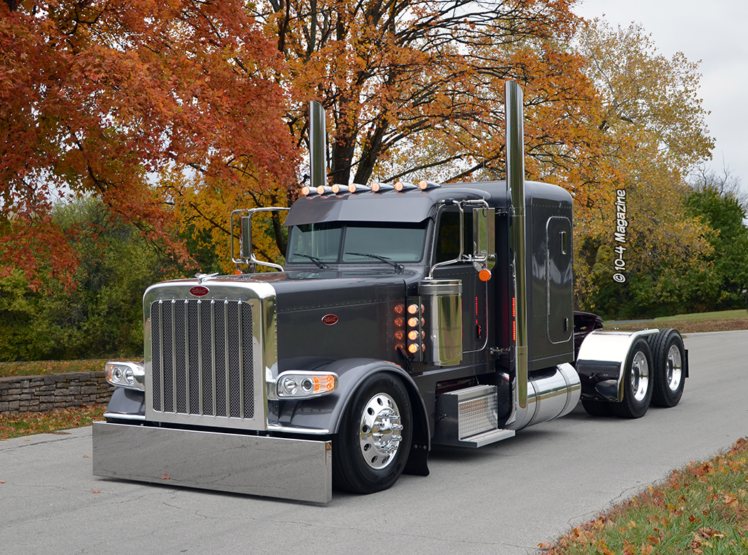After driving other people’s trucks for years, an opportunity came up for Mike to buy his own.  In 2014 he purchased a new 2015 Peterbilt 389 standard hood off a lot.  He loved this truck, kept it clean, and modified it to make it his own.  When it came time to order a truck just what he wanted, he went to the local dealer and talked to them, but then Tina said, “Why don’t you call Clint Moore?”  Mike has always been a huge 10-4 Magazine fan and loves seeing the trucks we build at KC Peterbilt and reading the stories, so he called me, and we hit it right off – Mike is a treat, and Tina is pretty awesome, too.