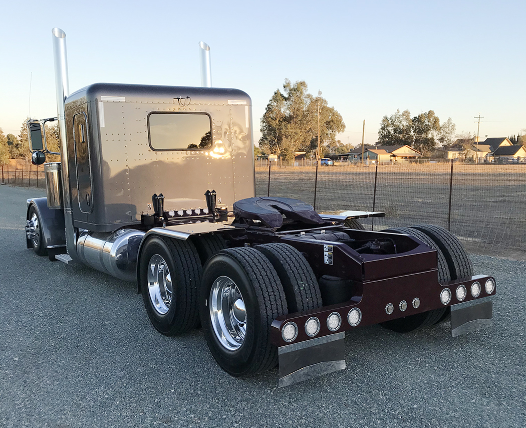 The truck is a 2021 Peterbilt 389 with a 48” flat top and a 565-hp X15, a 13-speed, and a modest wheelbase.  The color was a special gray Mike picked, which we matched up with a deep burgundy frame.  Once the truck came in, Jared got assigned the job of dolling it all up.