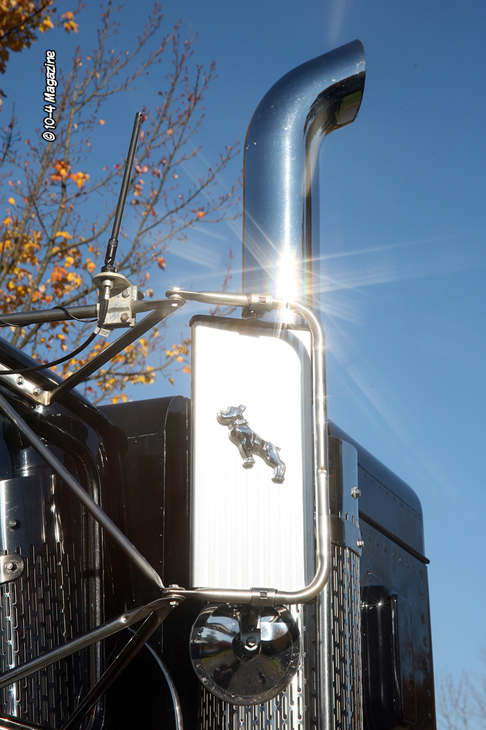 Three years later, after stripping the Magnum down to its frame rails, re-skinning the 36” Able-Body sleeper, adding fresh paint and new graphics, having much of the Magnum’s interior recreated (with the exception of the stock red Mack seats with the Magnum logo embroidered in the headrests), and rebuilding the E9 engine and the entire driveline, the big black Bulldog Mack Magnum rolled out of Stephen’s shop looking as good as the day it rolled off the assembly line.  “It’s not perfect, but it’s 99% complete,” referring to some of the unique odds and ends that adorned the Magnums when new, like the chrome brake chambers, which he did not put back on the truck.  “I have a love/hate relationship with this truck, as I have never been able to get it to run just right.  I’ve consulted with other Mack gurus, and we’re all a bit confused on why it is having trouble idling correctly,” Stephen explained.