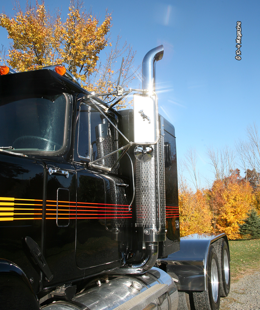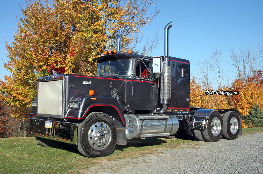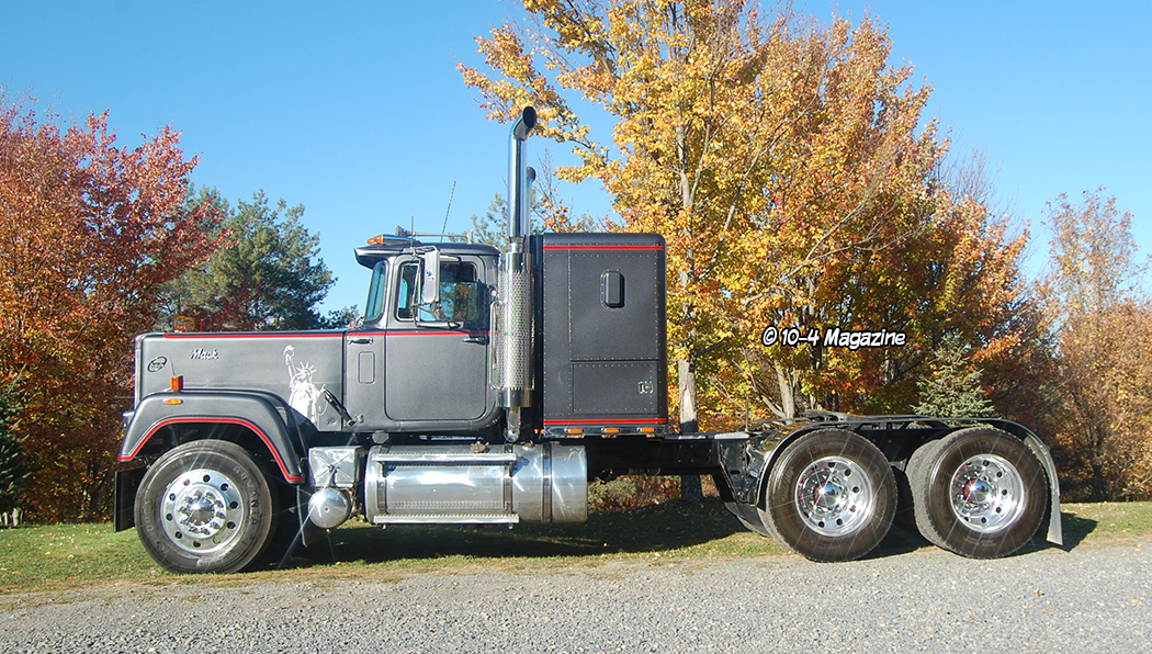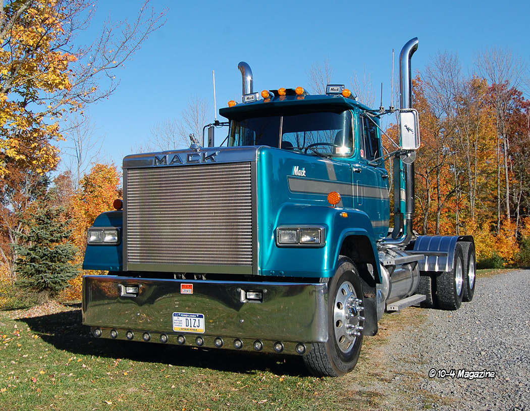 After graduating high school in 1990, Stephen got into dairy farming like his father, and also began working at a local truck and diesel repair shop.  But eight years later, the trucking bug finally got the best of him, and he began driving a 1982 E9-powered Super-Liner for his dad.  Purchasing his first truck in 1999, it was a 1985 Super-Liner with Canadian specs, including a 60” spread on the drives.  The truck was powered by a 440-hp E9 with a Mack 12-speed transmission and had a 60” sleeper.  It was also the 12th Super-Liner II ever built, but Stephen said he had no love for that particular truck – in fact, he really hated it.