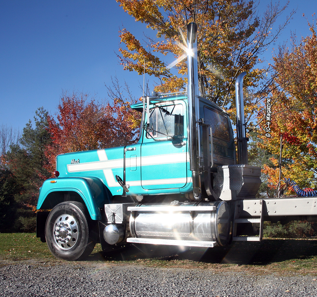 Since Stephen decided to call it quits, he’s been happily working as a mechanic for Sullivan Township in Tioga County, Pennsylvania the last year or so.  While not driving his Super-Liner on a daily basis any longer, Stephen has become one of the premier “go to” guys in the country when it comes to Mack Super-Liner trucks and Mack E9 V8 diesel engines.  He also began restoring trucks for others, and recently finished a year-long restoration of a 1986 E9-powered Mack RW713 Super-Liner day cab tractor for Mack collector Jeff Mante of Nazareth, PA.