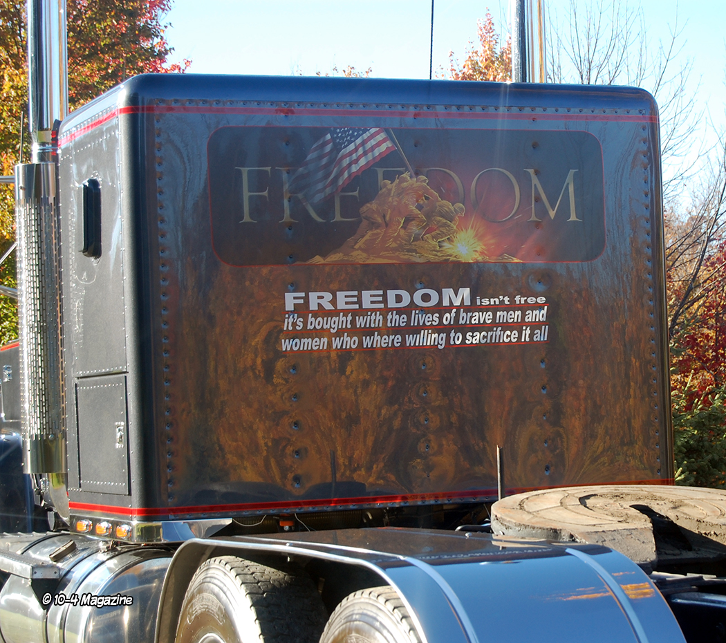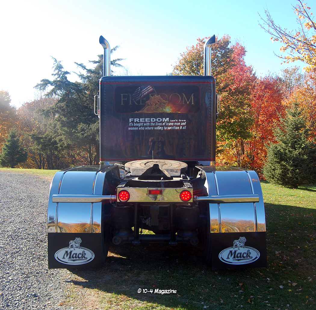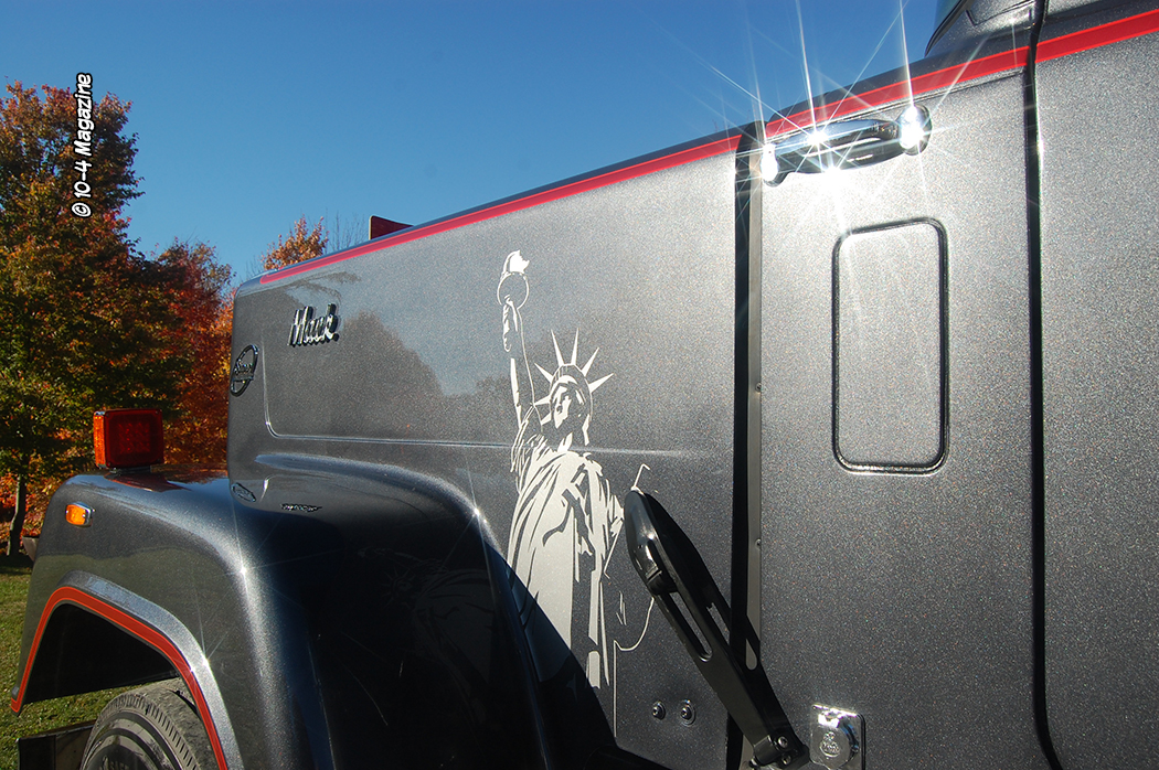 Thankfully, Stephen and Kyle were able to save and repair the truck’s original hood and cab.  After the paint was applied, it came time to find the “Lady Liberty” graphics.  After a few frustrating searches, Kyle ended up having a new set of graphics created for the truck.  Currently, Kyle’s 1987 Mack Freedom edition Super-Liner has 850K miles on it.  And, like his dad’s Magnum edition, Kyle’s truck is also strictly a show piece that has been retired from any revenue-generating service.