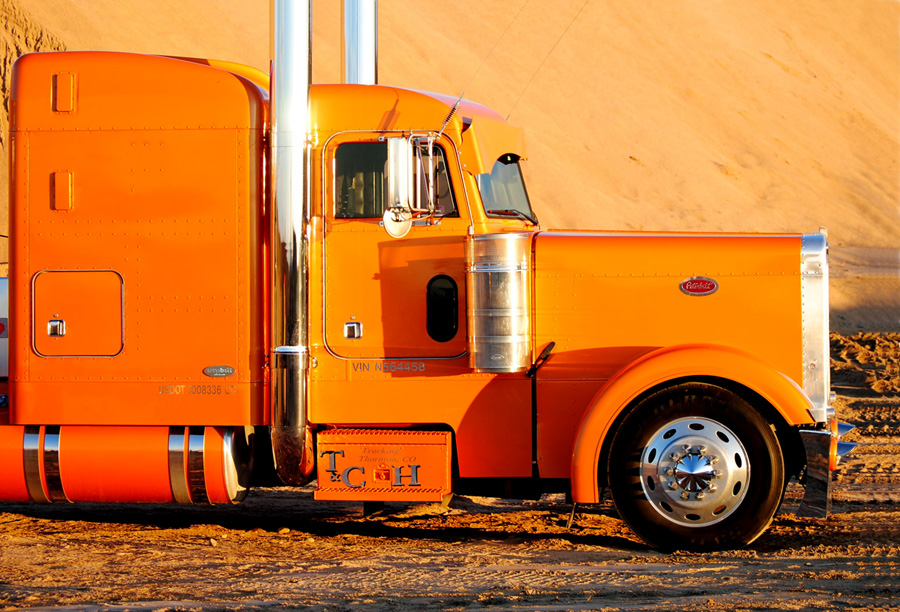 Though Ramon sometimes hauls interstate freight, the majority of his work is local to the Denver area, being that he is based in Thornton, Colorado. Pulling a half-round end-dump trailer, Ramon hauls sand and gravel, as well as larger types of aggregate and rock. Hauling in and out of the pits can put his truck in some tight and rough places. But, these obstacles do not bother him or slow him down – it is just what needs to be done to accomplish his job. And that’s not idle talk, either. Our photo shoot location was one of the sand pits that he hauls out of, and I got a front-row seat to his driving abilities.