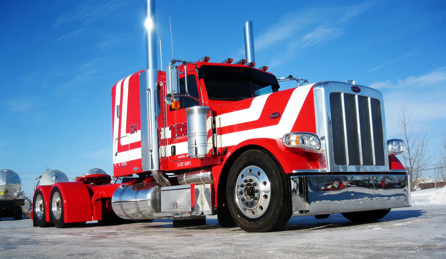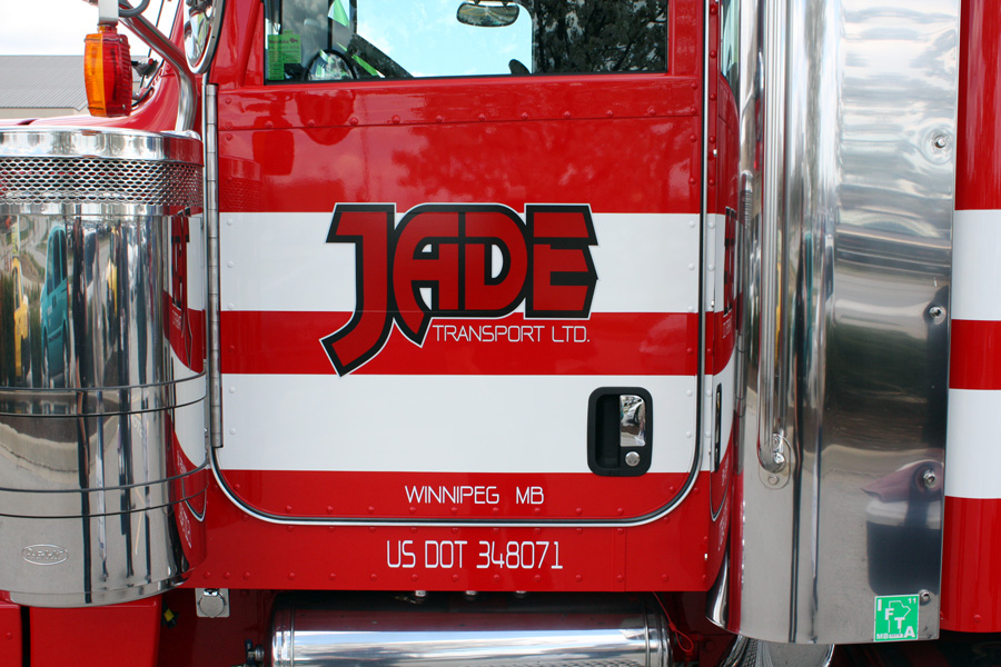 This month’s cool “creation” was originally ordered for a customer that changed their mind! After the truck sat on the lot for a bit, Larry Dyck of Jade Transport Ltd. in Winnipeg, Canada, saw it, liked it, and bought it. Being that Jade’s fleet consists of approximately 65 trucks that are all painted green, this purchase surprised just about everyone – including Clint and the guard at the Canadian border, who stopped the truck as it made its way home, and asked the driver, “You’re going to paint it green, right?” Nope!