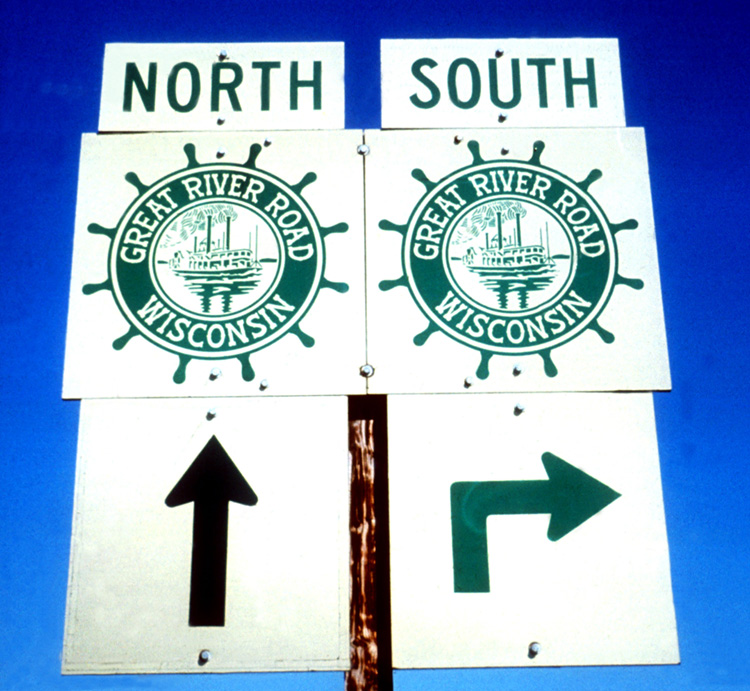 The entire GRR is marked with green and white signs with a river steamboat inside a pilot wheel (see photo). Along this famous road are 69 museums and historic sites, called Interpretive Centers, scattered throughout the ten states that border the river including Minnesota, Wisconsin, Illinois, Missouri, Kentucky, Iowa, Tennessee, Arkansas, Mississippi and Louisiana. The Mississippi River is the second largest watershed in the world, as tributary rivers and streams from 33 states and two Canadian Provinces end in the Mississippi. The river got its name from the Ojibwe Indians (also known as the Chippewa Indians), who called it Misi-ziibi, meaning Great River.