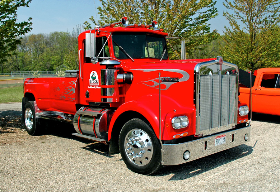 After Eddie Crock of Caldwell, Ohio worked his 1979 Kenworth truck hard for 11 years he decided to sell it. The problem was no one was interested in buying it, so he decided to do something he’d wanted to do for years – turn it into a custom pickup. Eddie lowered the front end by removing some springs, then added shocks and air bags, giving the truck a smooth ride. Then, he cut the frame in two, figured out what spacing looked best, and then welded it back together. Eventually, he shortened the frame a bit and added roughly 30” to an 8’ Chevy dually bed. With the bed sized up, he put the drivetrain back together and then put 2,500 pounds of cast iron in a box over the rear end to stabilize the truck when accelerating and braking. Next, he raised the fuel tanks up for both aesthetic and clearance reasons – the driver’s side tank now serves as a battery box. After finishing all of the mechanical work, Eddie then installed new lights, bumpers, custom running boards and new trim around the grille. The body work came next. The welds between the bed and the addition took a lot of time to hide the joints and make the sides of the bed seamless, but once the seams were hidden, all that remained was to paint the truck. The only work this toy truck does now is go out on the road to truck shows, parades and an occasional evening out on the town – a far cry from the truck’s early days on the job!