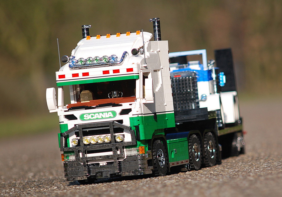 Many people use Lego bricks to create all sorts of things – buildings, people, animals, all types of vehicles, whatever – but we think we found the ultimate Lego big rig builder. His name is Dennis Glaasker, but most people know him by his internationally-recognizable alias “Bricks on Wheels” on the web. Dennis’ hobby is building scale models of cars and bikes, but mostly big trucks – and he is good!