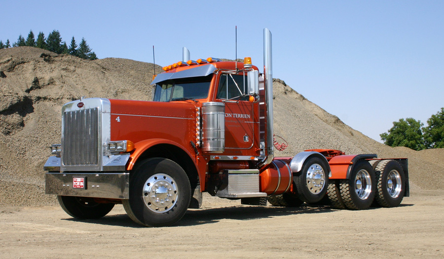 This month’s “Show-On-The-Road” was recently resurrected after an incident involving a ditch. In 2006, Jason Terrien of Junction City, OR bought this 1989 Peterbilt 379, but at that point it looked nothing like it does today! When Jason brought it home, the rig had a 36” bunk and sat on a 248” wheelbase. It didn’t take Jason and his dad long to shorten it up to 238 inches, pull off the sleeper, and equip it with a removable dump box and a detachable 5th wheel, making Jason’s ride a quick-change unit.