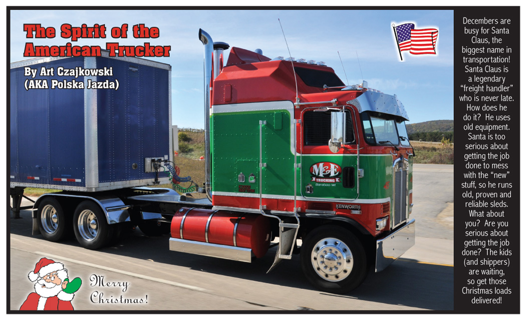 Decembers are busy for Santa Claus, the biggest name in transportation! Santa Claus is a legendary “freight handler” who is never late. How does he do it? He uses old equipment. Santa is too serious about getting the job done to mess with the “new” stuff, so he runs old, proven and reliable sleds. What about you? Are you serious about getting the job done? The kids (and shippers) are waiting, so get those Christmas loads delivered!