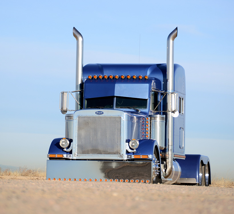 Being a car hauler can mean many different things – everything from hauling wrecks and used beaters to scrap yards and used car lots to rare super cars and exotics for the ultra-wealthy and famous celebrities. For Chris Peruzzi of Castle Rock, Colorado (a short drive south of Denver), it is the latter. Hauling for Lamb Transport, Inc. of Centennial, Colorado, Chris runs around the country in his “Stickerbilt” 379 – a stretched-out long-hood Peterbilt painted Medium Metallic Blue that is dedicated to the memory of his late step-father.