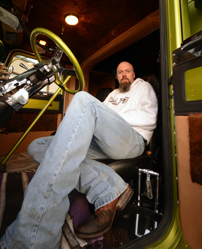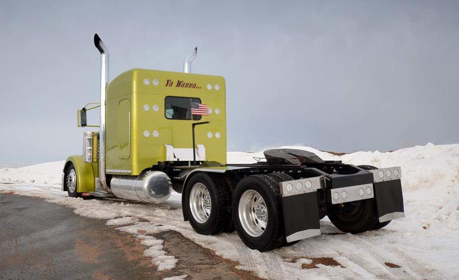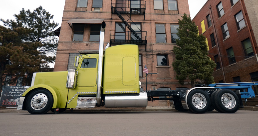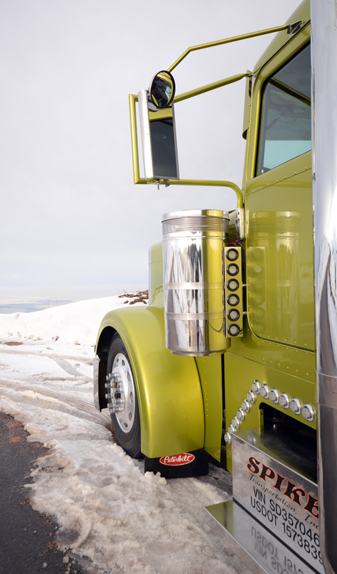 Except for a two year hiatus after his engine self-destructed (the block developed a problem that could not be fixed) in 2002, Spike has always been an owner-operator. Operating as Spike Transportation, Inc. out of Broomfield, Colorado (a northern suburb of Denver), Spike has pulled lowboys, bull racks, end-dumps, walking floors, tankers, step decks and flatbeds, always following the money. In fact, leading up to the photo shoot, he was running through snow, mud and magnesium chloride hauling for the Climax Mine on the western-slope of the Rockies. With about 1.3 million miles already on the clock (Spike is responsible for about 900,000 of those miles), Spike and his rig have certainly worked pretty hard over the years.
