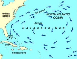 The Sargasso Sea is the earth’s only sea without a land boundary – it is an isolated area in the middle of the North Atlantic Ocean. The Sargasso is surrounded by the cold and hostile North Atlantic, but the sea is warm, clear blue and calm. At the bottom of the sea is the Nares Abyssal Plain, which is about 3.6 miles deep. Various ocean currents swirl around the edges of the sea – on the western edge is the Gulf Stream; on the northern edge is the North Atlantic Current; on the eastern edge is the Canary Current; and on the southern edge is the North Atlantic Equatorial Current. These currents swirling around the parameters of the sea create a calm spot in the middle of the ocean. The seaweed genus “Sargassum” is indigenous only to this sea, which grows thick and abundantly, can be seen floating on the surface of the water. For centuries, scientists thought the area was a vast desert with sparse nutrients, but today they have discovered the opposite – the currents that swirl around the sea feed into it, creating and sustaining many varieties of plant and animal life. Apparently, the thick seaweed provides a haven and food for many sea creatures. Scientists were also puzzled at the amount of plankton that bloomed in the sea, until they discovered that this part of the ocean is more productive then they once thought. A new study has revealed that eddies, strong underwater currents that rise up, carry nutrients from the bottom of the ocean to the top and give life to the sea. The Sargasso Sea was always thought to be a desert, but after extensive study it was revealed that much life exists in this body of water. The Sargasso Sea has now been compared to the rich teaming life of the rainforests! As we increase our knowledge, we begin to realize the true miracle of life!!