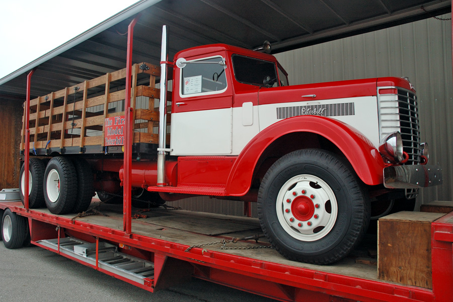 T.A. Peterman purchased the Fageol Truck & Coach Company in 1939. The slang term for Fageol trucks had been “Bill-bilt” after W.H. Bill. After Peterman purchased the business, he changed the name of the company and the trucks became known as Peterbilt. He kept most of the design features of the Fageol trucks, but he did not keep the Fageol’s signature finned ventilators running down the top of the engine hood. The first trucks were 6X4 trucks specifically designed for logging. They were also used in mining, quarrying and the oil industry. The trucks had an extruded aluminum frame and used aluminum in the cabs, bumpers and wheels, which reduced the weight by some 1,500 pounds (steel trucks were also available). The trucks came with either a Waukesha, Cummins or Hall-Scott engine. Peterbilt released their first cabover design in 1952. The truck pictured here is the first model Peterbilt offered – a 1939 Model 334. Concentrating on quality, Peterbilt produced only 14 trucks that first year. Over the years, they became a major manufacturer of Class 6-8 trucks and acquired the label “Class of the Industry” for obvious reasons.