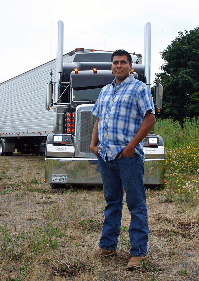 Leon Murillo Jr. (23) of Porterville, California always knew he wanted to be a truck driver, just like his father, Leon Murillo Sr. Losing his mother at an early age, Leon was raised by his father in the seat of a truck, learning to drive at just nine or ten years old. Leon can remember sitting in his dad’s lap, steering the truck, and whenever he began to drift out of the lane he was in, his dad would flick one of his ears, right or left, depending on which way he wanted him to move back toward the center of the lane. By the time he was eleven, much to the surprise of the other drivers around, young Leon was already backing his dad’s truck into the docks at his deliveries. After graduating from high school, he immediately took his driving test, earned his CDL, and then hit the road. At only 23 years of age, Leon already has about 600,000 miles under his belt, and counting.