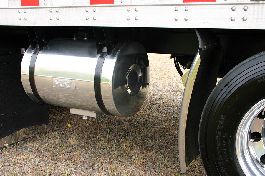 Dragging behind Leon’s truck is a 2003 Great Dane 48-foot reefer trailer. Originally equipped with sliding tandem axles, Leon later bought a fixed 10-foot spread-axle setup and swapped it out. He then moved the fuel tank to the back, mounting it between the spread, like the old-timers used to do. The trailer features quilted stainless rear doors, LED lights and two sets of polished quarter fenders. Leon would like to have the trailer’s rails and rear-door hardware painted black to match the truck, but for now, it still looks pretty damn good.