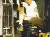 When Leon Sr. bought the Peterbilt it was outfitted with an aerodynamic package, with all sorts of fairings and covers, and the dual exhaust was located behind the 70-inch Ultra sleeper. Today, all of that stuff has been removed, and now the seven-inch Dynaflex exhaust is located on the sides, like it should be. Powered by a turned-up 3406-E Cat (from 475 to 550) hooked to a Super-10 transmission, this black beauty also has a painted drop visor, a custom-built and painted rear light bar, polished aluminum half-fenders, and HID (high-intensity discharge) headlights.