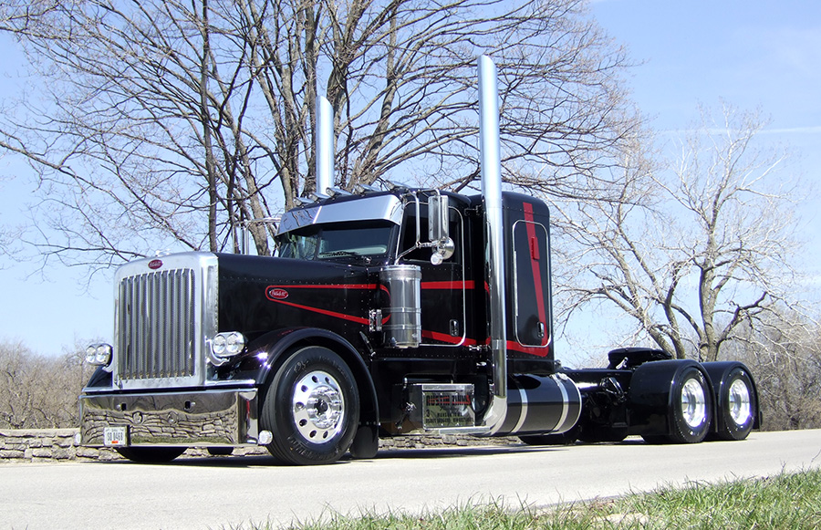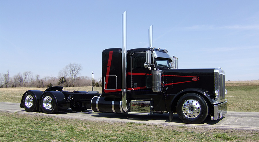 After working as a motorcycle mechanic for about a year, the trucks, like they always do, pulled him back in. Austin got a driving job with another local livestock hauler until he turned 21, then he hit the big road! In 2007, he decided to buy his own truck, and was fortunate to find a cool 2002 Peterbilt 379 Extended Hood with a 63-inch flattop and a 6NZ under the hood. He ran all over the Midwest with that rig, hauling livestock, until last summer, when he decided to rebuild it and fix it up a bit.