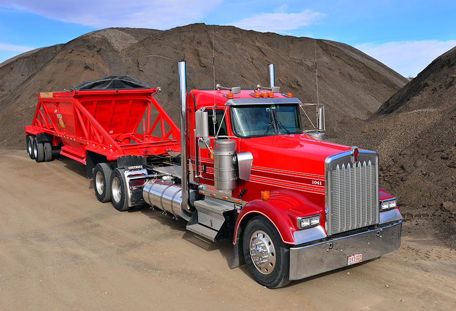 Today, Henry Hersh Trucking still operates an all-Kenworth fleet comprised almost exclusively of W900L Kenworths (they also have one T800W four-axle tractor). The fleet runs all Cummins or Cat power, 18-speed transmissions, and 40-44,000-pound rears, all sitting on 250-inches of wheelbase. The one oddball T800W Kenworth, their serious heavy-hauler, features a 600 horsepower 6NZ Caterpillar engine, 18-speed Eaton transmission, 20,000-pound steer and pusher axles, and 48,000-pound, 2-speed (3.90/5.27) rears, all on a double frame. Painted their hallmark two-tone red scheme with white accents (originally a factory scheme from International), the trucks are always kept clean. Running primarily Ranco and Precision belly dumps, as well as Travis aluminum end dumps and one Travis aluminum belly dump, the trailers are kept just as clean as the trucks. The fleet also has several lowboys and flatbeds for their varying construction work, as well.