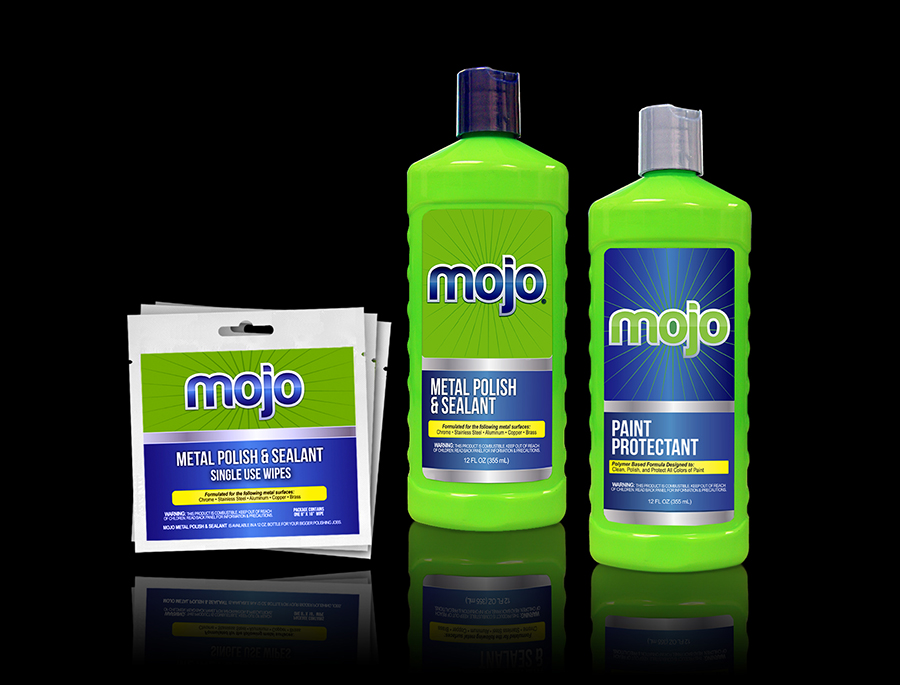 Looking to always grow and expand their offerings, the RoadWorks product development team launched a new line of detail products in 2011 called Mojo Detail Products. The line currently has three products – Mojo Metal Polish and Sealant, Mojo Paint Protectant, and Mojo Metal Polish & Sealant single-use wipes. All three of these products are easy to use and have a pleasant scent. Look for them at your favorite RoadWorks dealer. The company also plans to add additional products to the Mojo line in the near future, so look for those soon.