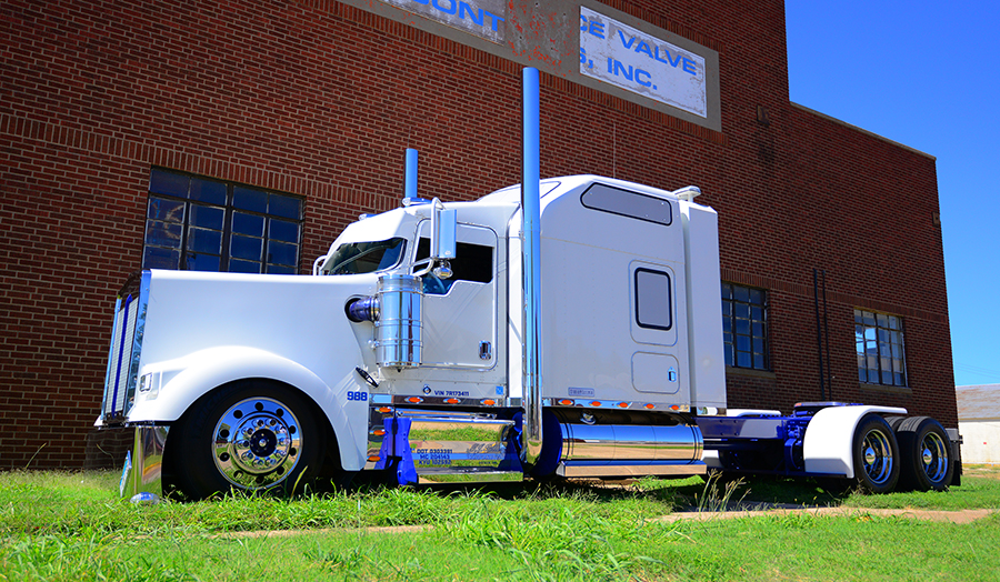 We at 10-4 Magazine would like to thank Chad for taking the time for a photo shoot and interview. Already having shut down for the Wilkins’ Busted Knuckle Truck Show, Chad found time to work with us on a shoot. We’d also like to thank the Wilkins family, all of their employees, and Wilkins Oklahoma Truck Supply for working with us and Chad to get his truck shot. A special thank you also goes out to Tanner Wilkins for riding along with us, helping with the final detailing of the truck, and showing us around Ponca City. Thanks for the tour, Tanner.