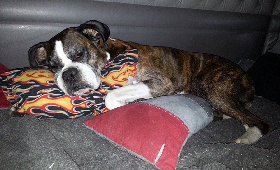 Trucking may be a lonely profession for some, but Chad never rides alone. For the last eleven years, Chad has had a faithful co-rider – his brindle-colored boxer, Chase. Chad adopted Chase when he was seven weeks old and Chase has been by Chad’s side through three trucks. And with a ride as clean as Chad’s, you might get the urge when you see it to want to just climb on up and take a peek at the interior, but with Chase always on guard, we would not recommend doing that. Although Chase is a very friendly dog, you certainly get the feeling that the truck is his, and that he simply lets Chad drive it!