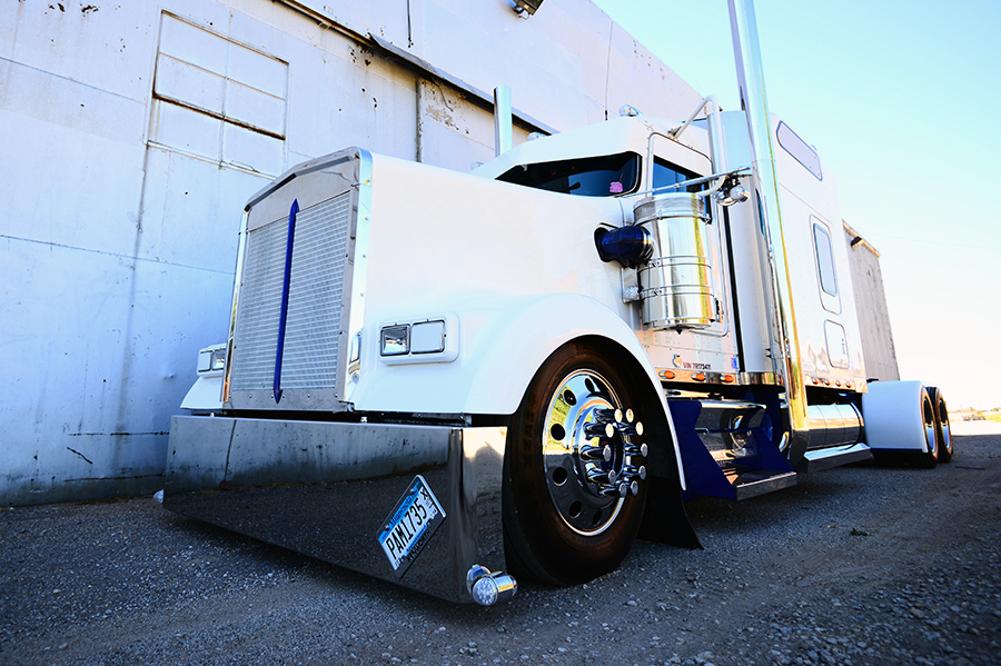 Chad (and Chase) would like to thank Harold Lezer of Lezer Painting for handling all of the sandblasting and paint work on the truck, as well as TL Woods for building his one-of-a-kind headache rack. Chad would also like to thank Steve and Lucy, as well as Duane (a longtime employee who recently passed away), of RoadSknz for handling the protective skins on his tanks, steps and boxes. Located in his hometown of Big Lake, MN, RoadSknz offers all sorts of stick-on stainless steel pieces and wraps for battery boxes, tool boxes, mud flaps, tanks, step plates and more. Thanks also go out to Transport Graphics for lettering the truck, and special thanks to Chad’s neighbor, Brian Barthel, for his help and support in building the truck. Lastly, he wanted to give some props to his good friend Dion Goskey for all of his help, too.