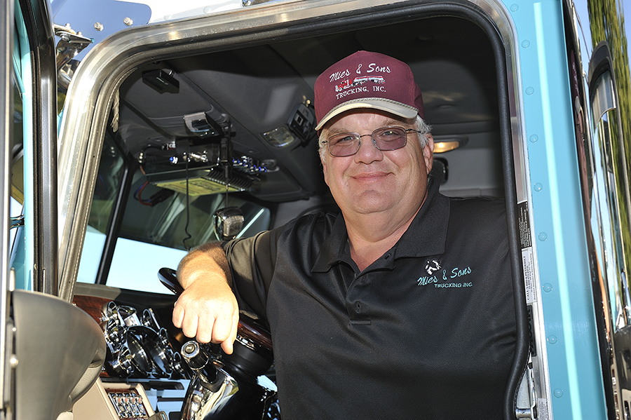 Mies & Sons Trucking is a true family-run business. Operating on a 10-acre piece of their 80-acre property in Colwich, KS, Jerry and Cathy have four grown children – Robert (28), A.J. (27), Katie (26), and Rebecca (20). Robert handles dispatch and safety; A.J. is in charge of payroll and human resources; Katie is a nurse (she does not work at the company); and Rebecca is a college student, but she helps out in the office when she can (they also have two grandchildren and a third one on the way). On top of all that, Cathy’s mom has worked with them in the office for the past 16 years. Cathy’s duties include “everything” in the office and managing the entire operation. Back in the day, when it was just Jerry and Cathy, she used to help him work on the truck – oil changes and tires were her specialties. Since hiring the full-time dispatchers, Jerry now has a little more time to go trucking, and now that he has this slick new ride, he is really loving it. He might not drive nearly as much as one of his regular drivers, but he drives a lot more than the average guy who owns a 65-truck fleet!