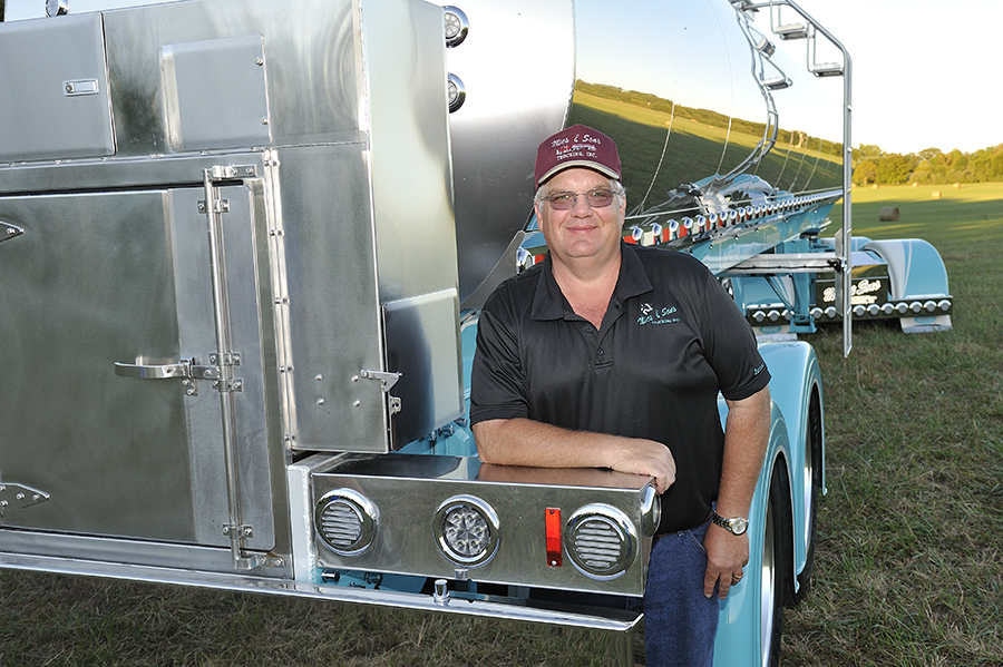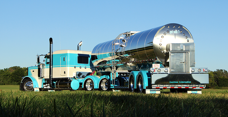 Jerry Mies loves milk so much that it’s probably flowing in his veins. Growing up on a dairy in Kansas and then later becoming a milk hauler, his entire working life has been centered on milk. Now, running a large trucking operation with help from his family, Jerry still loves to get out and drive whenever possible. So, to make that trucking time even more enjoyable, he recently built himself a personal truck, seen here, that he gets out and drives several times a week. But, as much as Jerry loves trucks, trucking and the dairy industry, he loves his family even more.