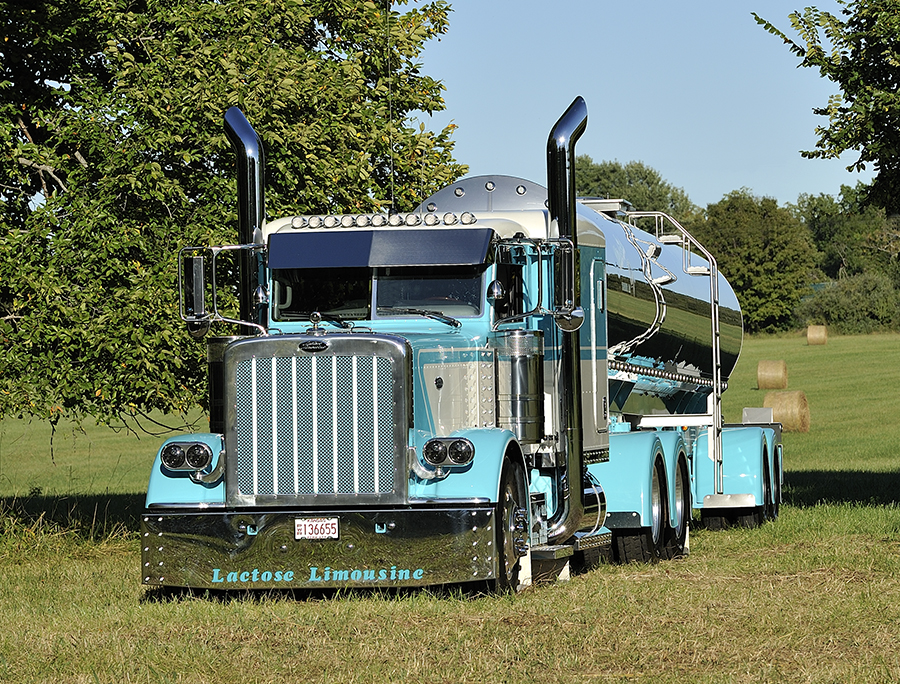 Today, Mies & Sons Trucking, based in Colwich, KS, owns and operates 65 trucks and 85 Walker milk tankers. With 75 employees, including two full-time dispatchers, Jerry and Cathy have their hands full on a daily basis. At first, all of the trucks were Internationals, but eventually they started buying Peterbilts. Today, 70% of the trucks in the fleet are Peterbilts, while the other 30% are Kenworths (when ordering a truck, Jerry lets the driver choose what he wants). And since most of their runs are 800 to 1,300 miles round trip, all of the trucks are equipped with sleepers. Jerry has no loyalty when it comes to colors – in fact, every one of his trucks is a different color or has a different color combination. This large assortment of bright colors has earned him the nickname “Skittles” in some circles.