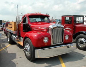 Mack B-models seem to be a favorite among antique truck nuts, and this 1962 B-61 owned by Jack Johnson of Plymouth, Michigan, is a prime example. From 1953 to 1966 Mack produced over 127,000 B-models, and nearly 53,000 of those were B-61s, making it one of their most popular trucks. That production number explains why a good many of them are still around in various states of repair (or disrepair). Jack’s flatbed Mack worked as a tractor hauling trailer-loads of goods in New Jersey for the first twelve years of its life. Then, a lumber company bought it and used it for many years to haul lumber from a railhead to the company’s yard. Eventually, the Mack made its way to Dennis Meehan’s collection, where Jack bought the truck in 2006. It had only 124,000 miles on it at the time. With the help of his son Bill, Jack got to work restoring the old Mack. The two men did all of the work themselves, “From front to back and top to bottom,” according to Jack. The low mileage meant that the truck’s Mack Thermodyne diesel engine was still in good shape and only needed a little tuning up. A new paint job, along with some spit-and-polish on the shiny parts, had the truck looking good again. New tires and a restored interior finished it off. Now, Jack enjoys taking his treasure to truck shows. In this photo, the truck can be seen on display at the famous Truckers Jamboree held every year at the Iowa 80 Truck Stop in Walcott, Iowa.
