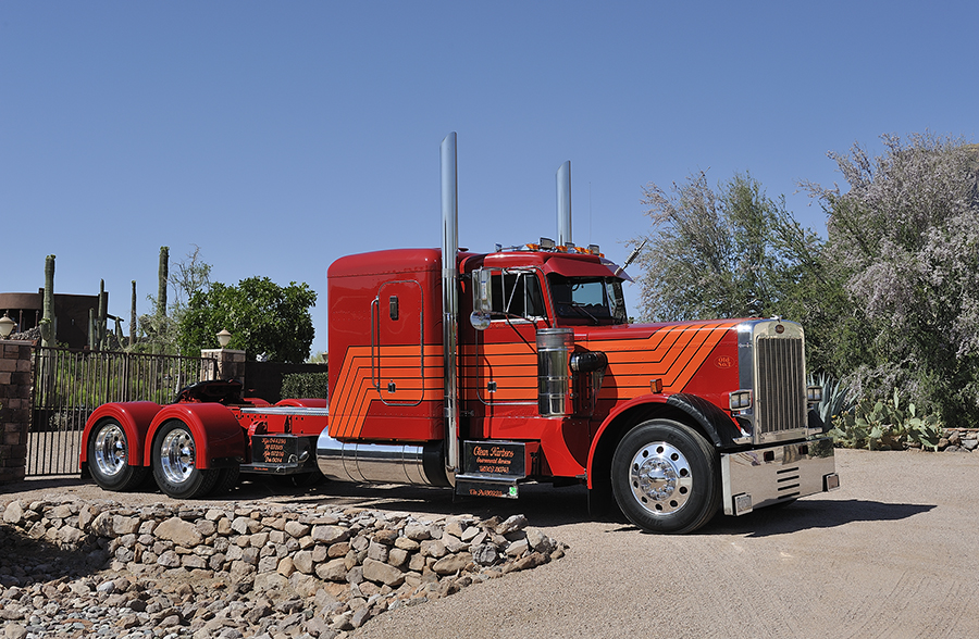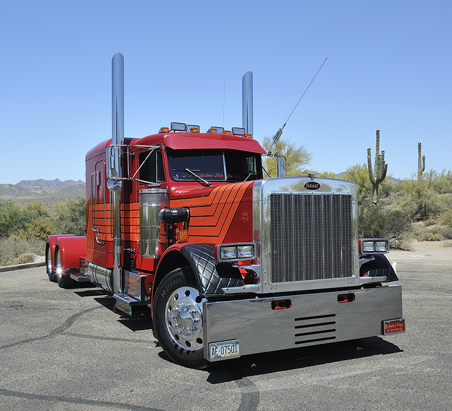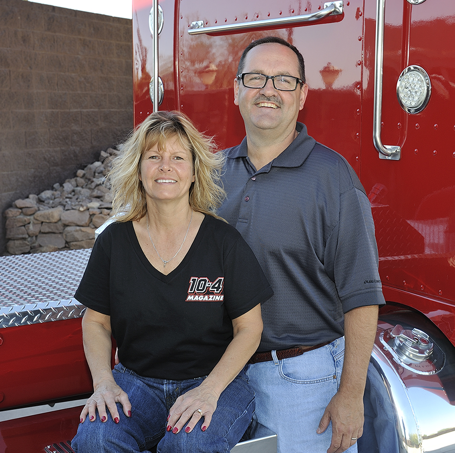 Running an older truck every day comes with its problems. Theresa wanted to thank a few people who are always there to help her when Dean is not around and she needs it, including Delbert, Max, Perry and Debra. She also wanted to send out special thanks to Tri-State Diesel, The Larson Group (Peterbilt of Joplin and Peterbilt of Louisville), Empire Caterpillar in Phoenix, and her local Peterbilt dealer in Phoenix, AZ. Most importantly, she wanted to thank her husband, Dean, for all of his mechanical and moral support, as well as her parents, Daniel and Susan Witt, for all of their help over the years. We at 10-4 would like to thank our friend and past cover trucker (twice) Ron Kelsey for keeping Theresa “on our radar” for all of these years.