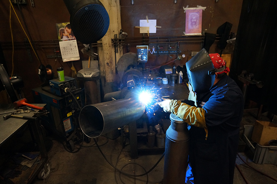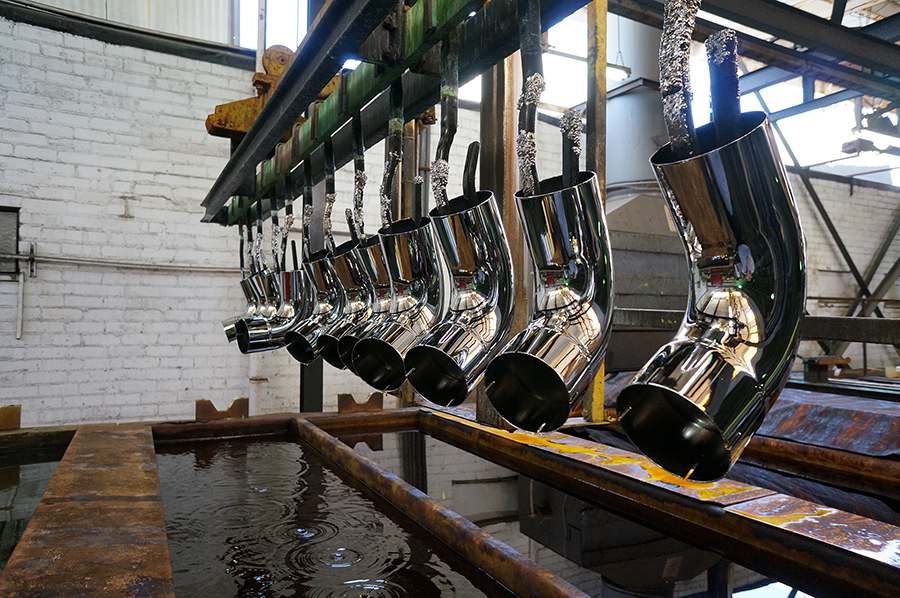 With two full shifts working in the manufacturing facility, they have ten welding bays, two automated saws (named Poncho and Maria), eight bending machines, and all sorts of other machines that cut, bend, punch, grind, split, press, and a bunch of other loud stuff (there is a lot going on out there)! Every part they make, whether it is destined to be chrome-plated or not, is made to the same strict standards, and every part they make is put on a test fixture to ensure proper fit before it ever leaves their building. They also have a “new parts” area where various makes and models of trucks are brought in and fitted with experimental components. At the time, there was a very cool red and black dump truck in there being fitted with some new “tester” parts (I could tell you what parts it was getting, but then I’d have to kill you). In addition to the three California facilities, they also have distribution warehouses in Kansas City and Dallas, to ensure the fastest delivery of their parts possible.