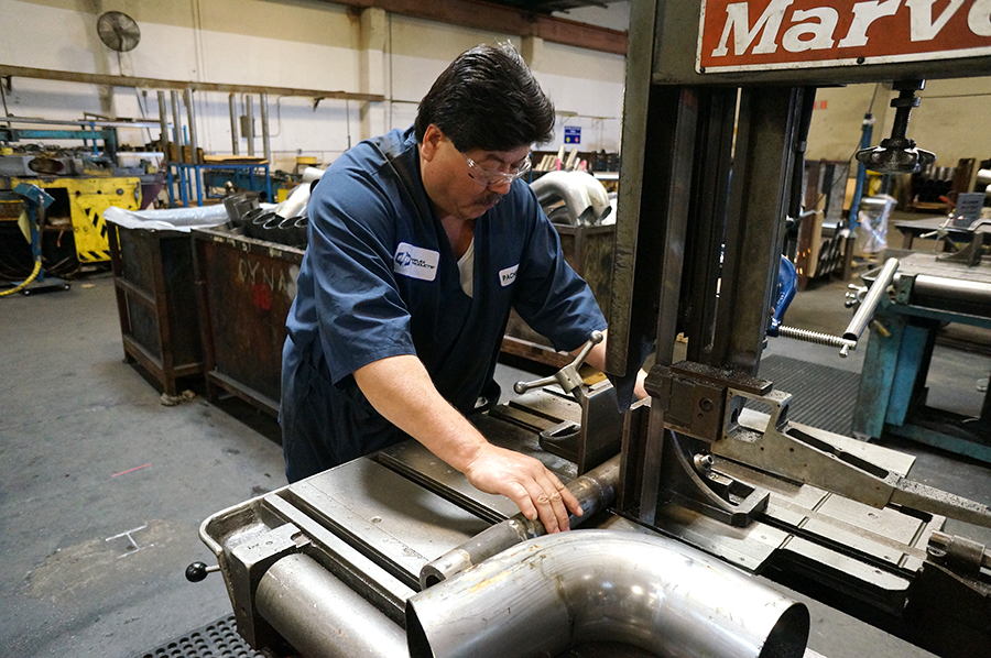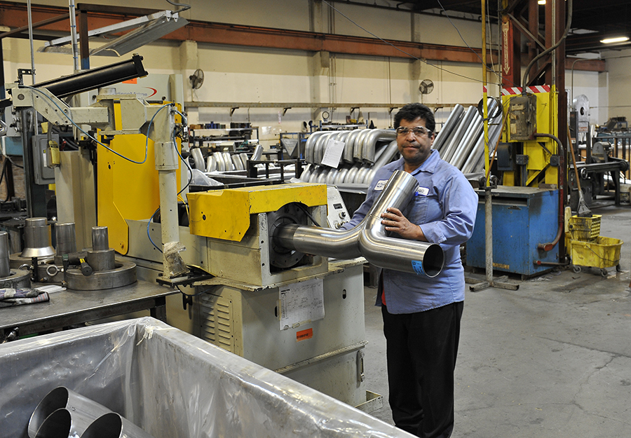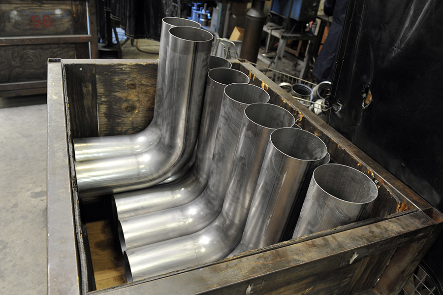 Gil and Bob were great business partners. Gil was the engineer and the “idea” guy, while Bob was the salesman. Together, along with help from people like Sal Quezada, who has been with the company since 1978, Dynaflex grew and prospered. In the early 1980s, in response to customer demand, Dynaflex made the first chrome 6-inch diameter stacks for trucks – and they were a huge hit. From there, it didn’t take long for truckers to start asking for even bigger stacks, and by the late 1980s they were making 7-inch and 8-inch pipes, as well. And they don’t just make the pipes – they make everything – including the gaskets, connectors, spools, brackets, mufflers, elbows, heat shields, clamps and more.