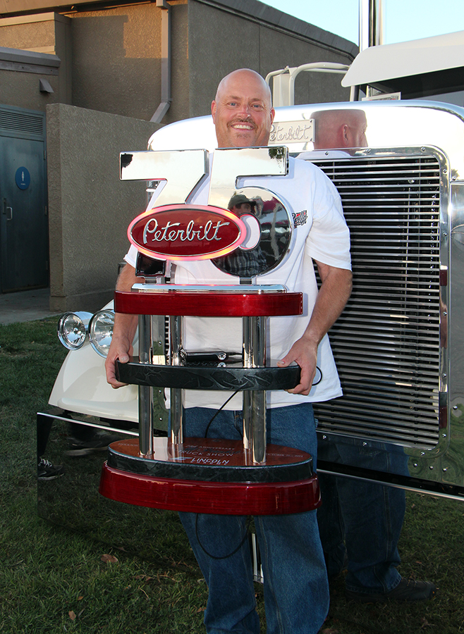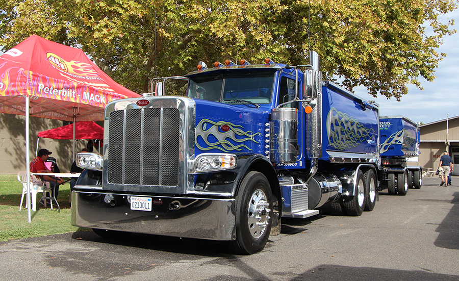 With plenty of trucks to see and things to do, the one-day show, which had about 5,000 spectators, went by quickly. Peterbilt brought out a special anniversary display trailer, pulled by an Anniversary Edition Model 579 (like the one next to our booth). Filled with all sorts of displays, historic artifacts and interactive kiosks, this “rolling Peterbilt museum” was a big hit. There was also an auction, live music, and a Peterbilt Employee Reunion (this fun get-together included past and present engineers and employees from all four of Peterbilt’s production plants). They also raffled-off a 1976 Peterbilt 359 Ext. Hood, with all the proceeds, raised throughout the year at various events, going to help fund breast cancer research. The lucky winner of the truck, C. Marshall of Livermore, Calif., was not present, but he was excited when they called him on the phone from the stage.
