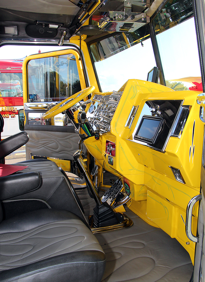 Held on October 24-25 at the San Joaquin Fairgrounds in Stockton, Calif., this event featured 400 Peterbilts of all types, new and old, custom and classic, from every decade. There were also some old Fageol trucks (the pre-cursors to Peterbilts), as well as the very first chassis to ever roll down the Peterbilt line in Oakland after T.A. Peterman formed the company. Before the first Peterbilt was made, six chassis were sent down the line to “test” the system. It was thought that all of these trucks were gone, but one of them, the very first one, was found at the Fremont Fire Dept., not far from Oakland. Although not technically a Peterbilt, this old 1939 fire truck (known as Chassis #1) with a Diamond-T front end, built by the Challenger Fire Equipment Company, is an amazing piece of preserved history, nonetheless – and it still runs!