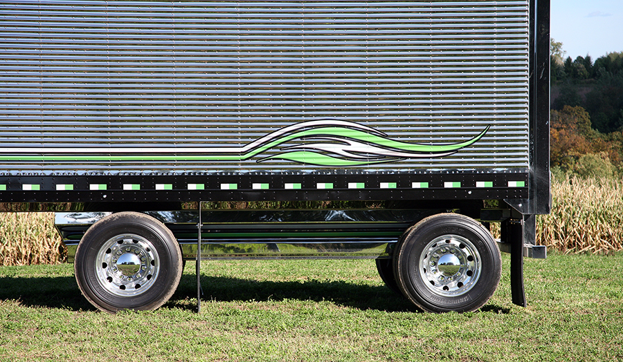 Jerry would like to give some thanks to the people who have helped him put together this special truck and trailer. Steve Pearson of Roadsknz in Big Lake, MN, does all of his custom-cut stainless accessories. Jerry tends to go for custom parts, but when he needs some bolt-on pieces, Sheldon at Big Rig Chrome Shop in Oshkosh, WI gets him what he needs. Dan at Winona Diesel in Winona, MN handles much of the mechanical work on the KW and also helps Jerry prep the truck for the shows, while Corey in the body shop has done a fabulous job on the paint – he even took apart and painted a pair of Jerry’s sunglasses John Deere green! The pristine combination has taken home many trophies over the last three years thanks in part to all of these people. Jerry also wanted to thank 10-4 Magazine for letting me share his story with our readers, and he appreciates the time I took to shoot the rig.