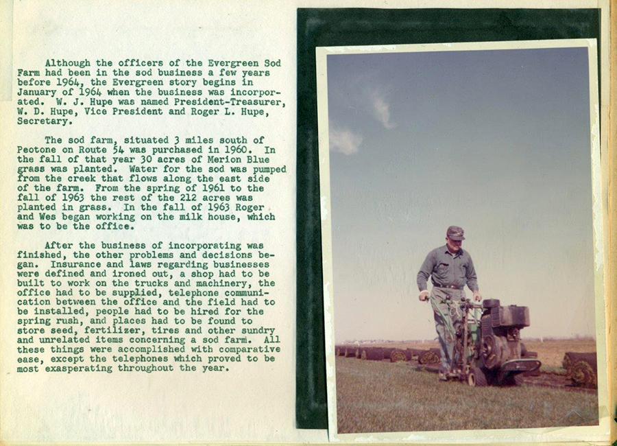 In 1959 the city of Chicago was expanding, and because of this expansion, farmer Wilbert J. Hupe decided it was time to sell his farm in Homewood, IL and move a little farther south. He bought 220 acres outside of Peotone, IL and moved his family there. Shortly after the move, he started Evergreen Sod Farm on this new, rural property. A few years later, his son’s, Dean and Roger, joined him in the sod business. Taking advantage of the fact that they were located close enough to the city to deliver, but not in it, the sod farm continued to grow. In 1964 the company was incorporated.
