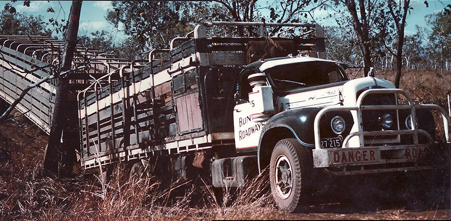 Later, after being pushed out by some competition, Noel bought a B61 Mack and began hauling cattle into the Wyndham Meat Works on Western Australia’s far northern coast. His home was a tent and his office a briefcase behind the seat of his truck. This eventually improved to a house trailer to sleep in and a Holden ute (the SUVs of the day) for traveling to broken-down trucks. Ever down-to-earth, it was always a beaten up Ford F250 pickup rather than a shiny Merc he’d be seen in, even when wealth came along.