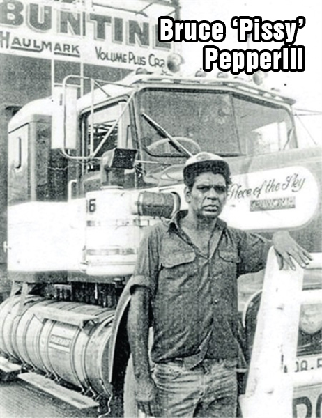 Noel Buntine was as big as the country he traveled. If outback drivers ran short of money in the days when a cash point was as rare as a drop of rain, they booked up their food, beer and cigarettes to Noel. Astute as he was, everyone knew he was as straight as they come. Even when money came along, he was never too big for his boots. He’d invariably be found having a beer in the front bar of the Katherine Hotel or at the tire depot in one of the bays with his men who, wrote Gibson, “were of all colors and persuasions and were judged on their ability to make a mile and nurse a truck and cattle.” One of them was an aboriginal driver named Bruce ‘Pissy’ Pepperill, whose favorite reply, when anyone asked if he was ‘an aboriginal’ was, “Just an original!” To work for Buntine, it wasn’t good enough just to know how to drive a truck. Men like Pepperill had to know how to handle cattle, repair a gearbox on the side of the road, sleep in a swag and fix their own meals, which was often a steak cooked on a shovel over the hot coals.
