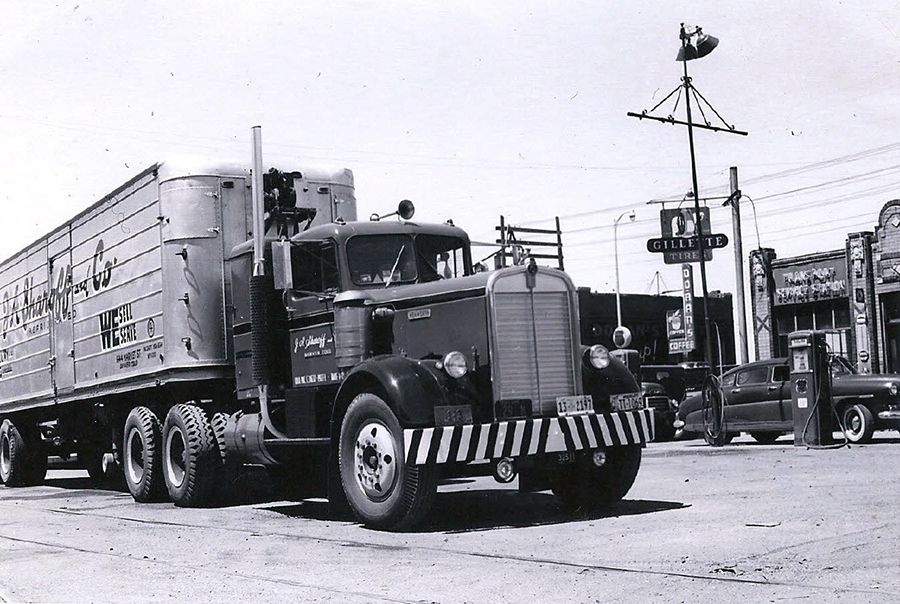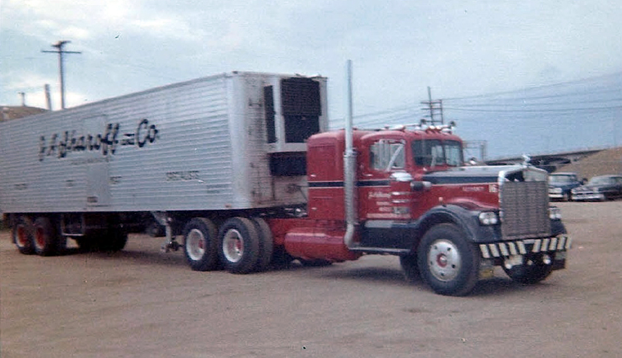 Bob grew up around J.A. Sharoff, which was one of the premier trucking outfits in Colorado that started in 1929. Bob’s father, Delbert, was the truck boss at J.A. Sharoff, a company that specialized in hauling meat and eggs. With a fleet of mostly narrow-nose Kenworths pulling reefers, Delbert brought about the classic J.A. Sharoff paint job, which was red with black and white striping. And that’s where Bob’s first job in trucking came from. In the mid ‘50s, Bobby, then just eight years old, would climb into the reefers through the front vent doors and get meat hooks out of the trailer so they could scale heavy loads. Making $0.50 per trailer (not a bad wage for an 8-year-old kid in 1955), Bobby has been working in and around trucks ever since.