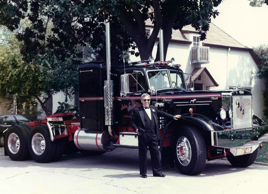 Bill’s dad, Jake C. De Witt, started Jake C. De Witt Livestock Transport in the late 50’s in Chino, CA. Later, he moved to Phoenix, AZ after he sold out in Chino, and then went to drive for Al Knudsen Livestock. In 1967 he bought a 1956 Peterbilt COE from a livestock hauler in L.A. who had bought it new. With a 262 Cummins and a 4×3 transmission, this was the only truck Jake ever named – he called it Twally.