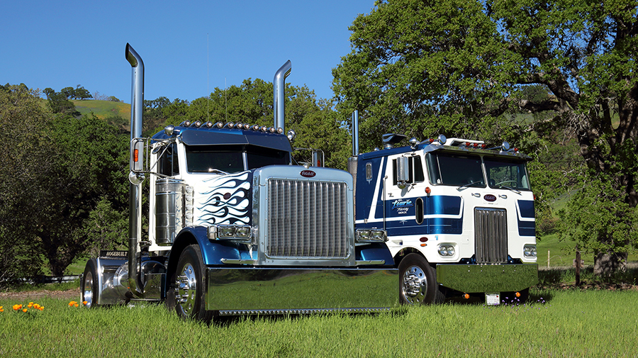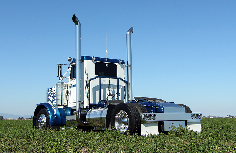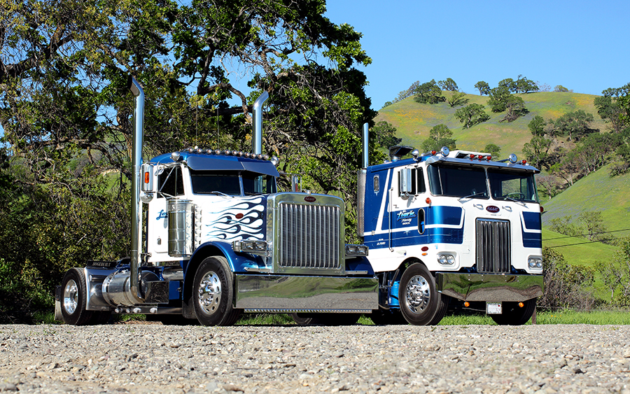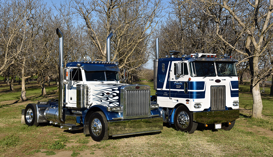 Over the decades, Mike Lowrie’s fleet of Peterbilts has grown from one to 300 by being a diversified and reliable carrier of California’s agriculture products and building industry raw and finished goods. And, on top of that, their entire fleet is 100% CARB-compliant – except for the two trucks featured on our centerfold and these pages – which are just the “mascots” of the fleet these days.