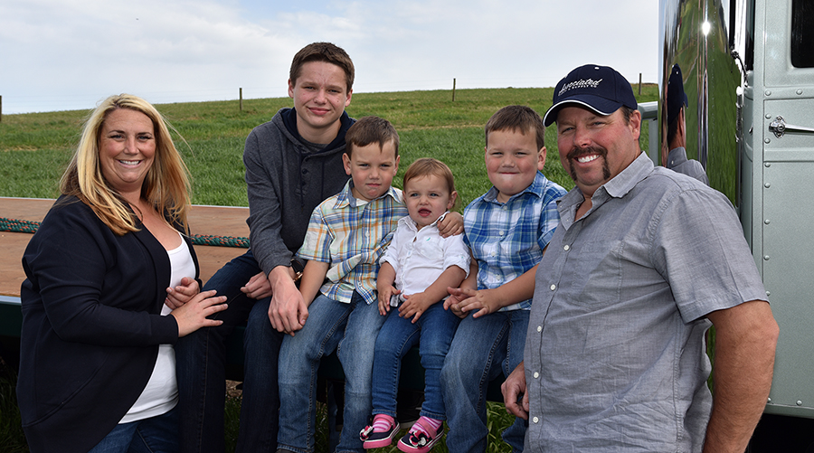 In 1995, Bill bought two brand new glider trucks – 1995 Freightliner COEs – and dropped a 3406C Cat in each one. Neil got to drive one of these trucks and put 150,000 miles on it in less than two years (that is a lot for a hay truck that did not travel very far from home). But, life on the road was beginning to take its toll, so when Neil got the opportunity to come home and start running the dairy, he took it. He also wanted to start a family. Getting together with one of his sister’s friends, she and Neil were married in May of 1998, and two years later, Neil’s first son, Harrison (now 15), was born.