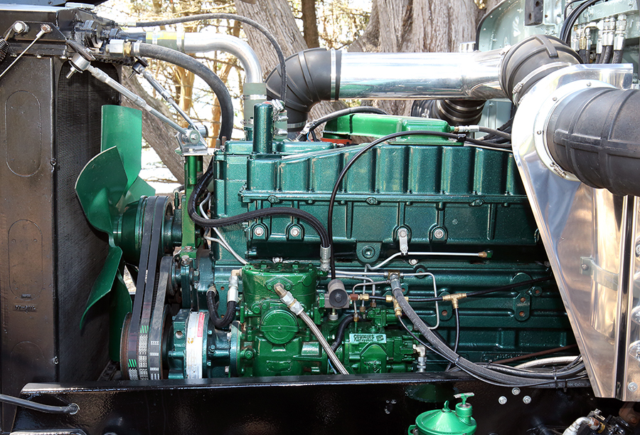 The hood got damaged when they pulled the rig out of the field, so Neil sent it to Courtland Truck Works to be rebuilt. When it came back, he sent the cab and hood to the same local painter that did his engine (and every truck he had ever had painted) to be sprayed, but not long after that, the guy skipped town, and took Neil’s money with him. After getting his parts back, Neil sent them to Bill Rocha in Oakdale, California, but Bill did not like the colors that Neil had chosen. Eventually, he convinced Neil to change the grass green to metallic mint green, to go better with the other color, which is a dark forest green. Neil agreed, and Bill started painting.